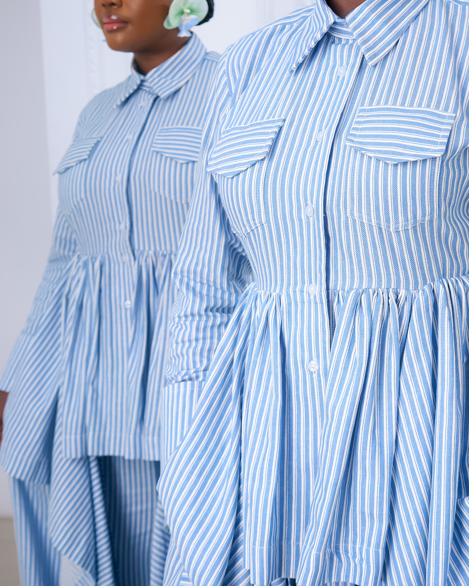 A stripe asymmetrical shirt.